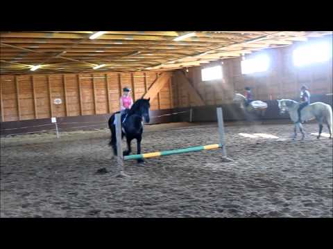 Sunnuntaina 30.6 hyppäsimme laitumella ja meni ihan superisti. Jemina meni Taavilla ja minä Hensulla. Mentiin rataa ja ensin se oli n. 30-40cm eikä ongelmia ollut kuin radan muistamisessa. Taavi oli erittäin tietämätön miten kovaa halusi mennä. Ensin liian laiskasti ja sitten liian reippaasti kädelle painaen. Sitten rataa nostettiin 60cm tasolle ja Jemina hyppäsi sen kerran, minä Hensulla kahdesti. Sitten Taaville ja Jeminalle nostettiin este 80cm korkeaksi ja he selviytyivät siitä hienosti ilman kieltoja. Sitten kokeilimme 90cm korkeaa estettä mutta Taavi ei suostunut hyppäämään sitä. Minä kävin sitten kieltelemässä sitä estettä useamman kerran Taavilla ja lopulta pääsimme yli vieläpä ihan siististi, kerrankin. Jemina meni vielä Taavilla muutaman nostamattoman 60-70cm korkean esteen, jotta hänellekin jäi hyvä mieli.
